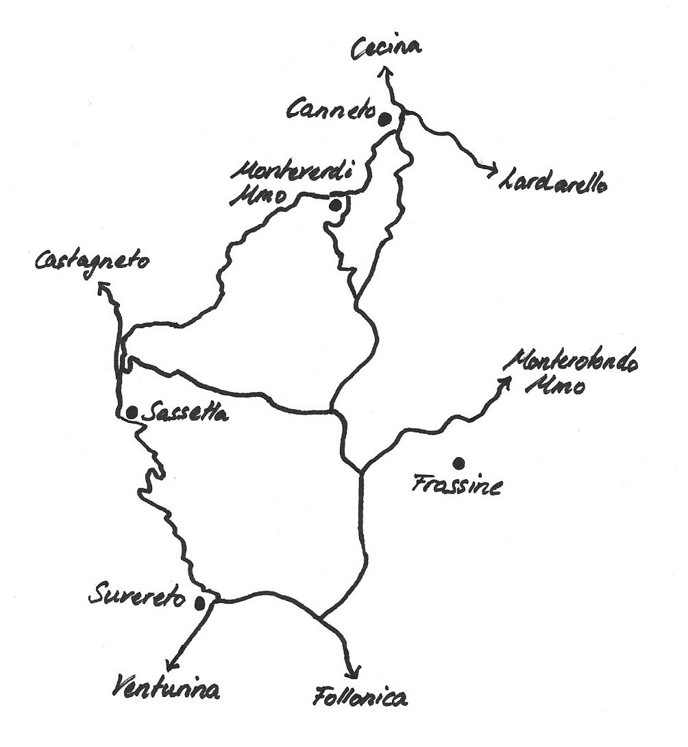 Von dort der Beschilderung folgend über Suvereto nach Monteverdi Mmo.