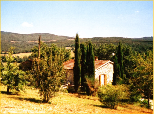 Alleinlage inmitten unberührter Natur der Alta Maremma, vier Kilometer vom Ort Monteverdi Mmo. mit allen Einkaufsmöglichkeiten und 20 km vom Meer entfernt. Auf einer Anhöhe, 80 m oberhalb der kleinen Landstraße, stehen drei Gebäude, umgeben von einem drei Hektar großen Grundstück mit Wald, Wiesen, einem Teich und Garten.